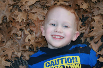 I love these pictures of their faces in the leaves. I didn't take one of Elijah but after the snow melt, if my leaves are still there I just might have to get him out there so I can frame them!